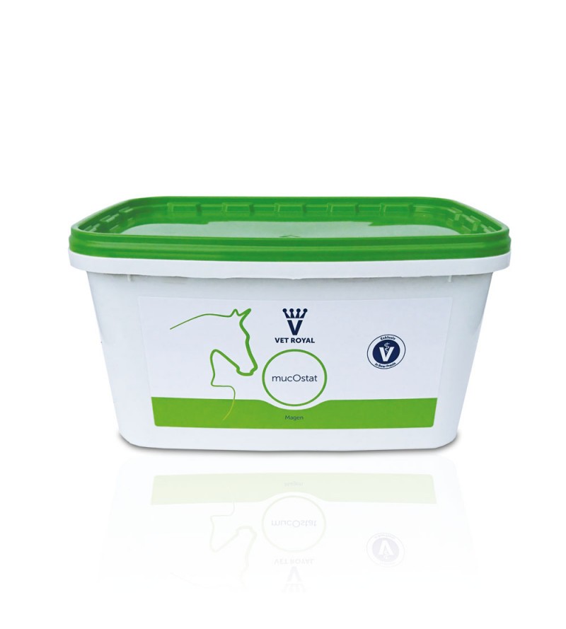 Przyczyny tego stanu rzeczy są różne: zbyt duży stres, zbyt wysoki udział zboża w diecie przy zbyt małej ilości pracy, zbyt mała ilość lub zła jakość paszy objętościowej. Doprowadziło to m.in. do nadmiernego, profilaktycznego stosowania preparatów typu omeprazol u pacjentów narażonych na stres. Ponieważ jednak produkty te są generalnie wchłaniane dopiero w jelicie cienkim, w wielu przypadkach podawanie ich wcale nie jest pomocne, ponieważ u większości pacjentów z problemami żołądkowymi zaburzona jest także flora jelitowa. Celem opracowania mucOstatu było optymalne przygotowanie całego układu trawiennego konia do schematu leczenia weterynaryjnego. Miała również zostać stworzona alternatywa dietetyczna dla problemów żołądkowych wynikających ze stresu. Próby podawania preparatu przeprowadzone w renomowanych klinikach potwierdzają sensowność takiego rozwiązania. Podstawą mucOstatu są ekspandowane ziarna soi, które stanowią optymalną bazę do podawania preparatu w sposób przyjazny dla żołądka. Zawarta w nim lignoceluloza pomaga wiązać nadmiar kwasu żołądkowego. Wyciąg z maklei sercowatej (Macleaya cordata) posiada pozytywny wpływ na wydzielanie prostaglandyn, a tym samym pośrednio na hamowanie procesów zapalnych w obrębie błony śluzowej żołądka. Z uwagi na to, że problemom żołądkowym z reguły towarzyszą wtórne problemy jelitowe, mucOstat zawiera również składniki, które mogą działać stabilizująco/regenerująco na jelita. Szczególnie istotny jest zawarty w preparacie koncentrat topinamburu; skoncentrowany prebiotyk, który posiada zdolność do trwałej stabilizacji flory jelitowej. Zawarta w nim inulina jest doskonałym podłożem dla bifidobakterii, dzięki czemu wspiera florę jelitową. Pektyny z wytłoków owocowych dodatkowo stymulują perystaltykę jelit.