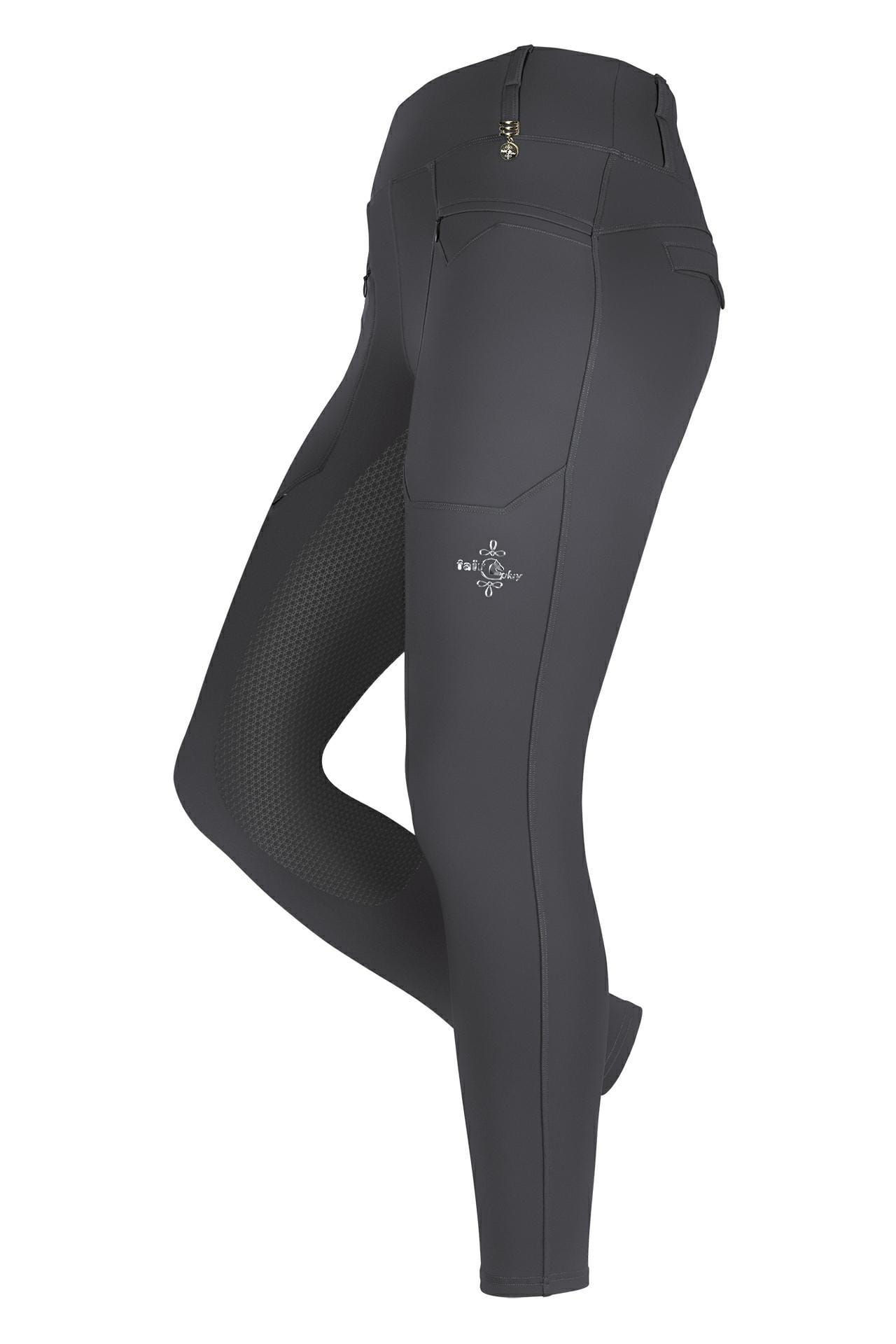 Breginsy jeździeckie damskie FP HEXA z pełnym, silikonowym lejem i podniesionym stanem - kolor szary