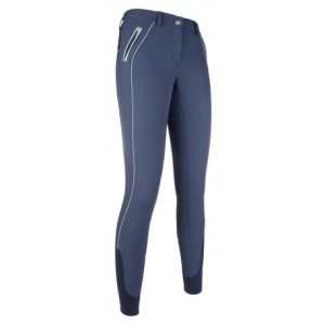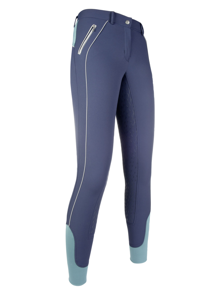 Bryczesy damskie HKM Athletic Reflective z pełnym, silikonowym lejem i kontrastowym lampasem z boku - granatowe