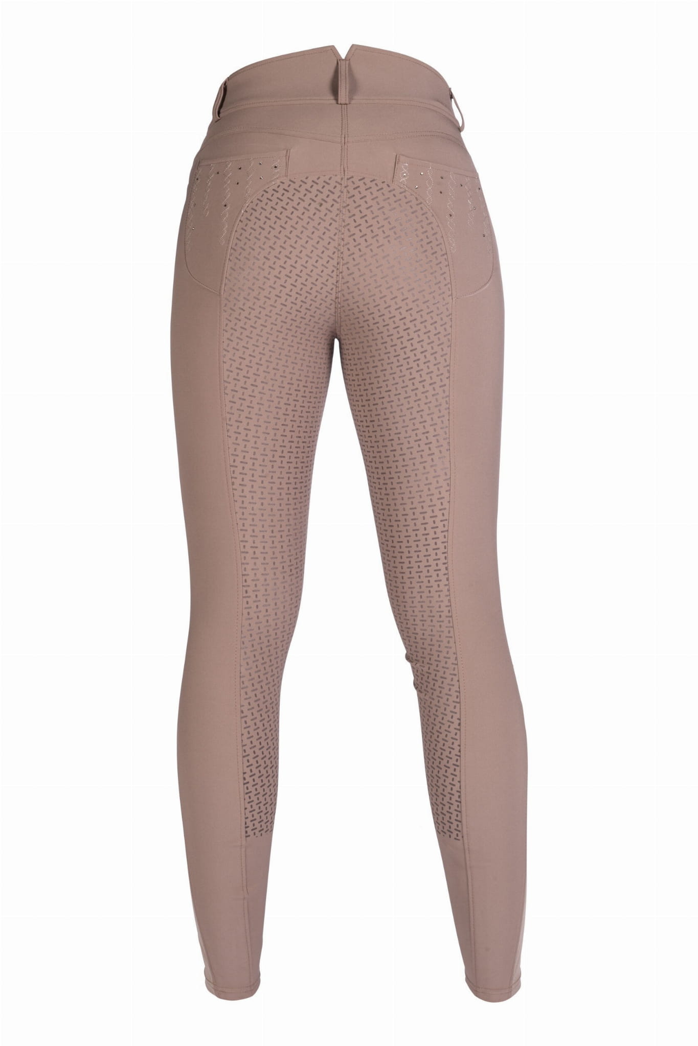Bryczesy damskie z wysokim stanem, silikonowym pełnym lejem HKM Lavender Bay - kolor taupe