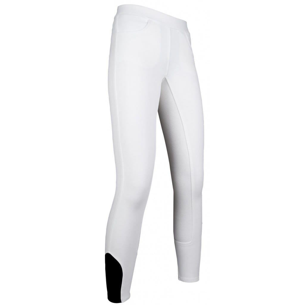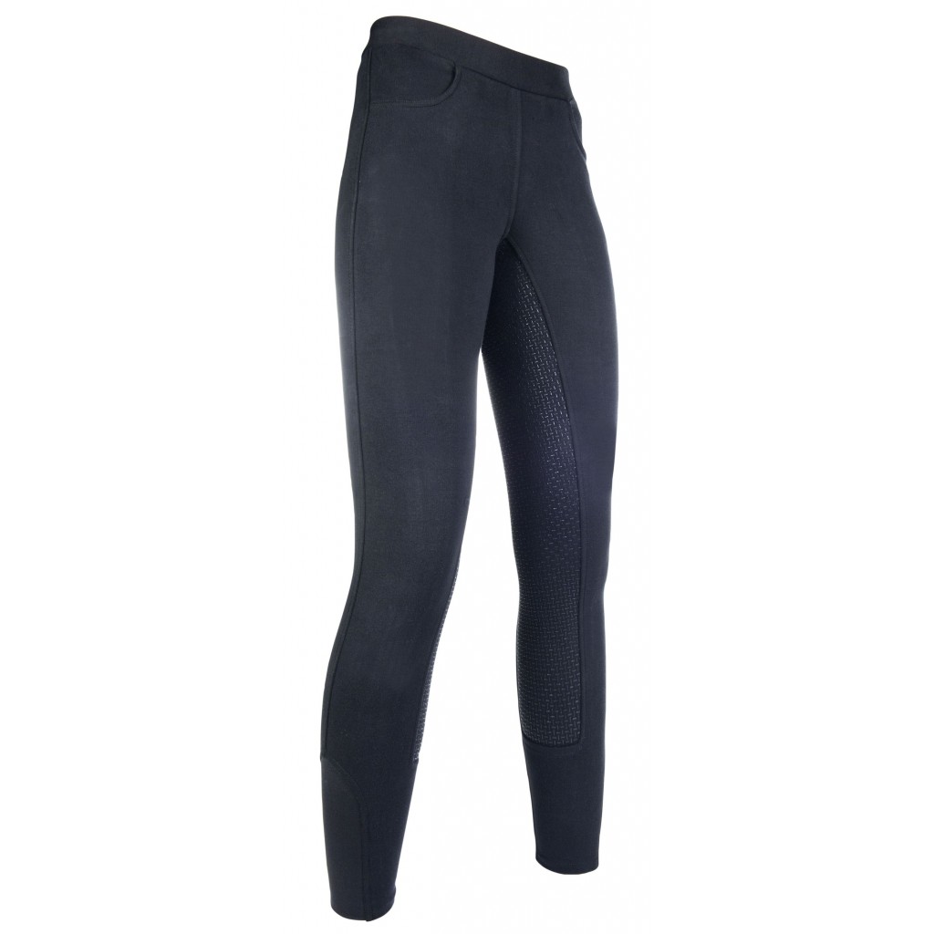 Leginsy do jazdy konnej z pełnym lejem silikonowym firmy HKM. Wykonane z oddychającego , elastycznego materiału miłego dla skóry. Posiadają dwie kieszenie z przodu oraz lej silikonowy, który zapewnia lepszą przyczepność w siodle. Nogawki zakończone elastycznym materiałem.