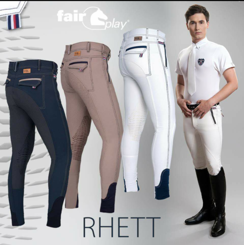 Nowatorskie i efektowne bryczesy męskie z półlejem pokrytym silikonem Comfistick®, którego unikalna struktura zapewnia maksymalny komfort i przyczepność podczas jazdy. Ozdobione wstawkami i przeszyciami w kontrastującym kolorze oraz odblaskową wypustką. Z tyłu dwie kieszenie z patkami i naszywka z logo Fair Play. Elastyczne zakończenie nogawek.