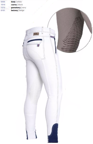 Białe bryczesy męskie z silikonowym lejem rozmiar 50