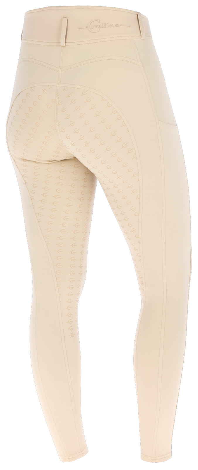 Bryczesy z lejem silikonowym COVALLIERO zostały specjalnie zaprojektowane z myślą o wymaganiach aktywnych jeźdźców. Te niezwykle komfortowe i elastyczne damskie bryczesy łączą w sobie estetykę z doskonałym dopasowaniem, pozwalając na swobodę ruchów podczas treningów czy zawodów. Miękki, przyjazny dla skóry, oddychający i szybkoschnący materiał błyskawicznie odprowadza pot na zewnątrz zapobiegając przegrzaniu podczas aktywności fizycznej. Funkcjonalna, elastyczna tkanina rozciągliwa w 4 kierunkach zapewnia pełną swobodę ruchów i idealne przyleganie do ciała. Bryczesy mają pięknie wymodelowany krój, lekko podniesiony pas z tyłu bardzo ładnie podkreśla kobiecą sylwetkę. Pełny lej z silikonowym nadrukiem odpornym na ścieranie zdecydowanie poprawia przyczepność w siodle a co za tym idzie ułatwia utrzymanie dobrego dosiadu. Kieszeń na telefon komórkowy umieszczona na prawym udzie jest praktycznym rozwiązaniem, szczególnie dla osób aktywnych, które chcą mieć swój telefon zawsze przy sobie, nie tracąc przy tym wygody czy bezpieczeństwa. Z przodu wszyta jest mała kieszeń na monety lub inne drobiazgi. Szlufki w pasie umożliwiają noszenie paska do spodni. Elastyczne wstawki na kostkach zwiększają komfort i ułatwiają zakładanie i zdejmowanie bryczesów, jednocześnie zapewniając idealne dopasowanie do butów jeździeckich. Na lewym udzie ozdobne logo marki Covalliero.