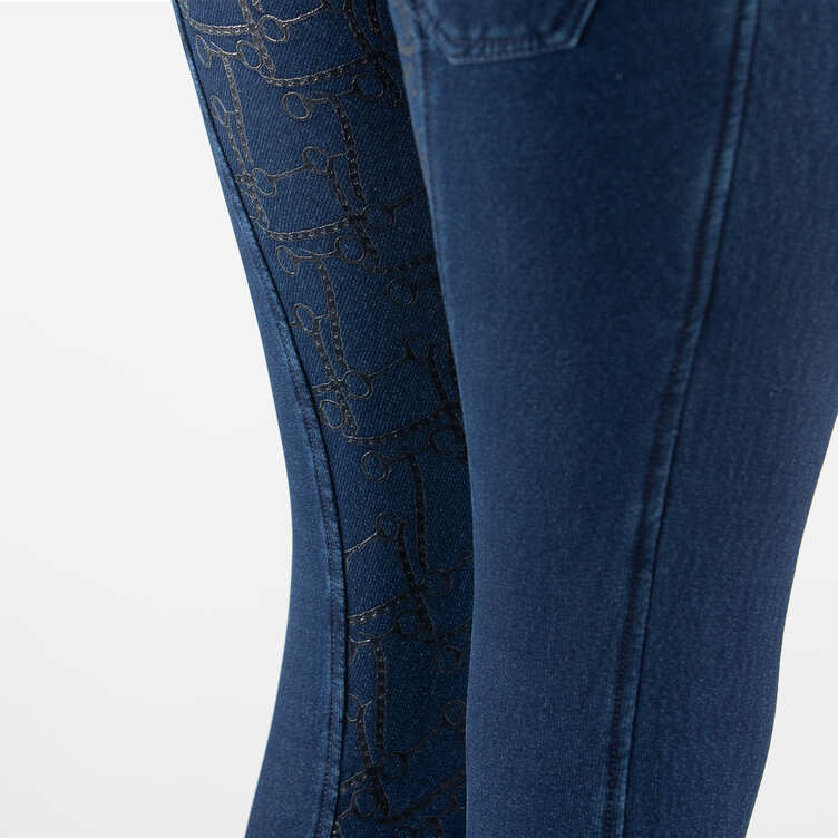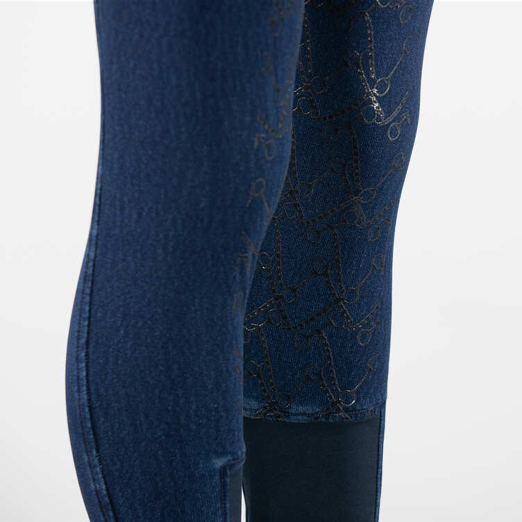 Bryczesy damskie zimowe HORZE Kasey z wysokim stanem i z pełnym, silikonowym lejem, jeansowe