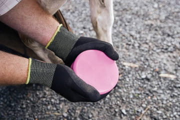 - Gumowana podstawa niezawodnie zapobiega przedostawaniu się wilgoci i jednocześnie zapewnia, że płyn zabiegowy pozostaje na kopycie