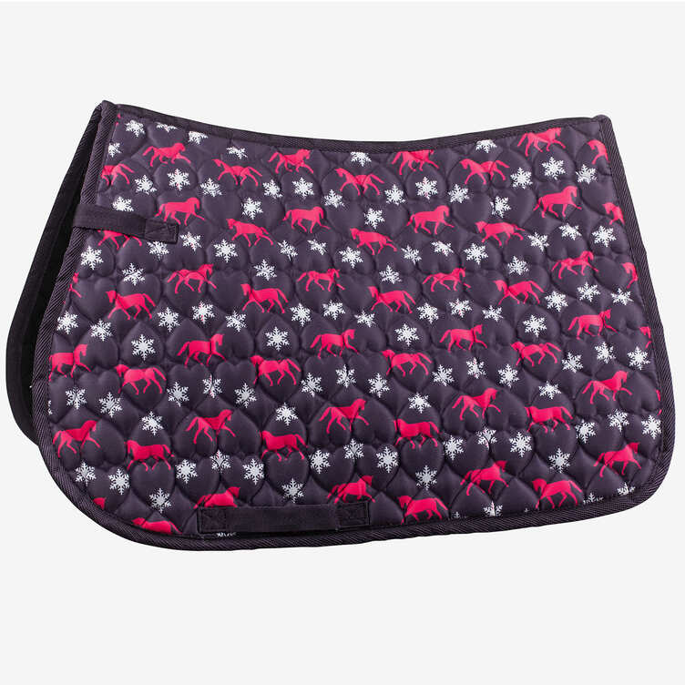 Uroczy czaprak Horze Tucker z zimowym motywem.