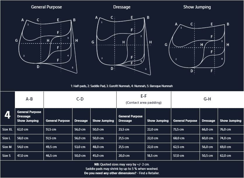 - XL - zalecany do siodeł o rozm. 18,5"-19" (dł. górą 62 cm; wys. VS - 51,5 cm, DR - 56 cm).