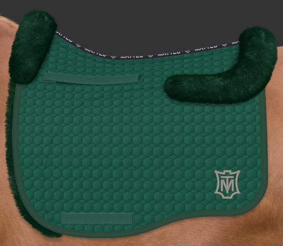 Czaprak Mattes podszyty futrem pod spodem, z przodu i tyłu oraz z klinem pod przednim panelem