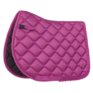 Wyjątkowy czaprak stworzony z myślą o najmniejszych wierzchowcach. Wykonany z wysokiej jakości lekko połyskującej satynowej tkaniny. Urocze pikowanie w kwadraty i serduszka z pewnością przypadnie do gustu młodym amazonkom. Piankowe wypełnienie o grubości 1mm oraz włókna poliestrowego o gramaturze 200 gramów świetnie rozkłada ciężar i amortyzuje wstrząsy. Od wewnętrznej strony czaprak podszyty jest drobną siateczką, która w szybkim czasie wchłania wilgoć i odprowadza ją do zewnątrz. Anatomiczny kształt linii grzbietowej doskonale dopasowuje się do grzbietu nawet najbardziej wykłębionych koni. Czaprak posiada krótkie paski zapinane do sprzączek typu D-ring przy siodle oraz szlufki na popręg pozwalają na stabilne ułożenie czapraka pod siodłem.