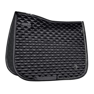 Wykonany z wysokiej jakości materiałów atrakcyjnie pikowany czaprak, zapewniający odpowiednią amortyzację oraz komfort dla konia podczas jazdy.