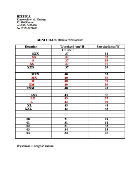 Tabela rozmiarów dostępna w galerii rozmiarów