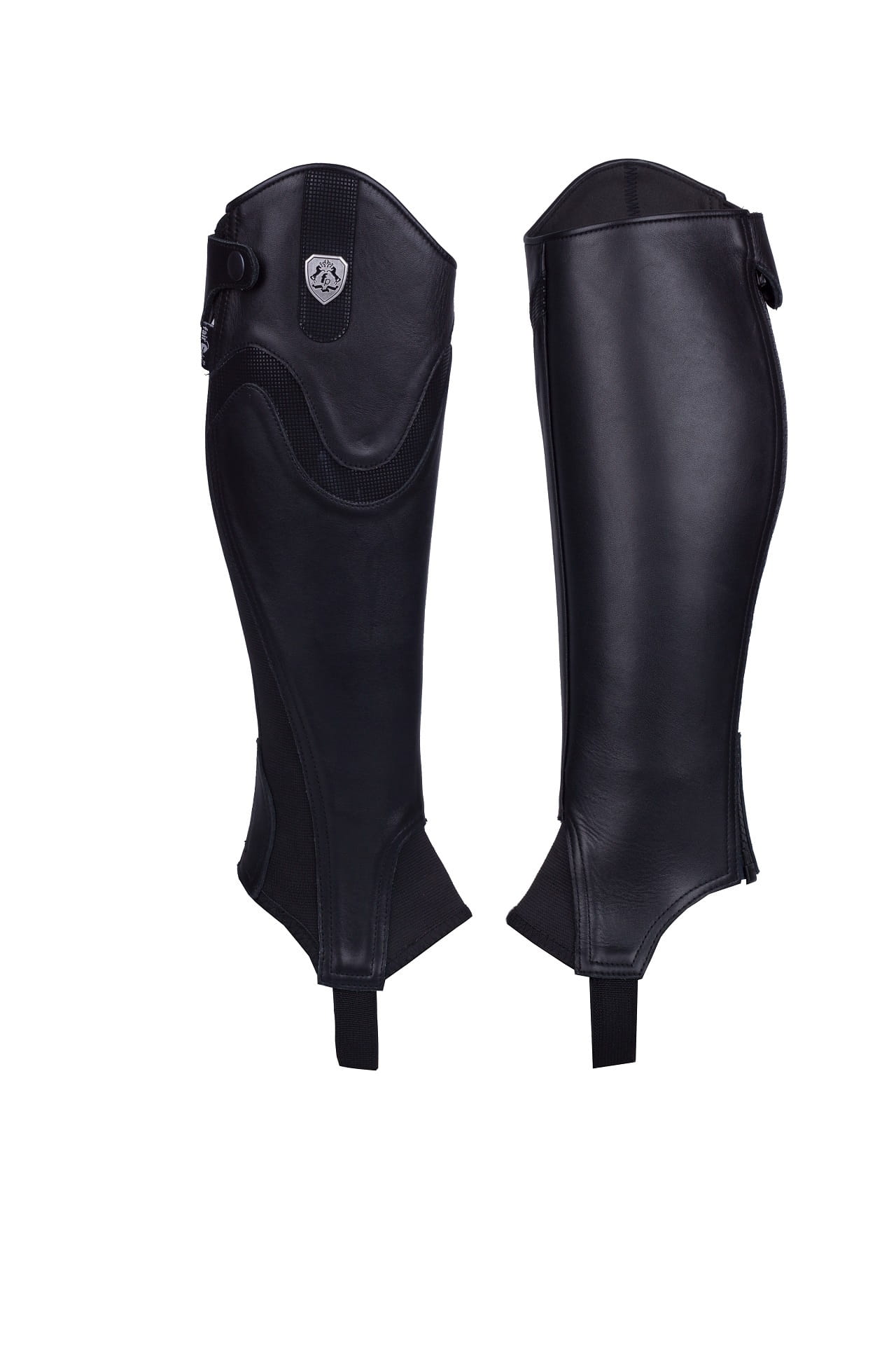 Wykonane z wysokiej jakości skóry naturalnej. Posiadają wyprofilowaną zewnętrzną, górną część, co wydłuża optycznie łydkę. Zapinane przy pomocy zamka błyskawicznego oraz zakończone dodatkowym zabezpieczeniem w postaci napa. Elastyczna, gumowa wstawka wszyta wzdłuż zamka pozwala na jeszcze lepsze dopasowanie do kształtu łydki. Od zewnętrznej strony ozdobione logo marki oraz błyszczącą wstawką, dzięki którym sztylpy mają niepowtarzalny styl i elegancję.