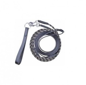 Wodza pomocnicza do treningu konia wykonana ze skóry i nylonowej linki. Wyposażona w szlufkę do popręgu.