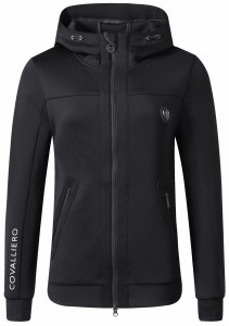 Wykonana z wysokiej jakości oddychającego i przyjemnego w dotyku materiału, ciepła bluza jeździecka z kapturem. Taliowany krój podkreśla kobiecą sylwetkę zapewniając przy tym komfort i swobodę ruchów podczas użytkowania. Posiada dwie kieszenie zapinane na zamek, które z łatwością pomieszczą najpotrzebniejsze drobiazgi. Kaptur dodatkowo chroni przed zimnem a w razie gdy nie jest potrzebny można go dopiąć do bluzy przy pomocy guzika, tak aby nie przeszkadzał w trakcie treningu. Ozdobiona kontrastowymi napisami Covalliero na kapturze i rękawie oraz subtelnym logo marki na piersi.