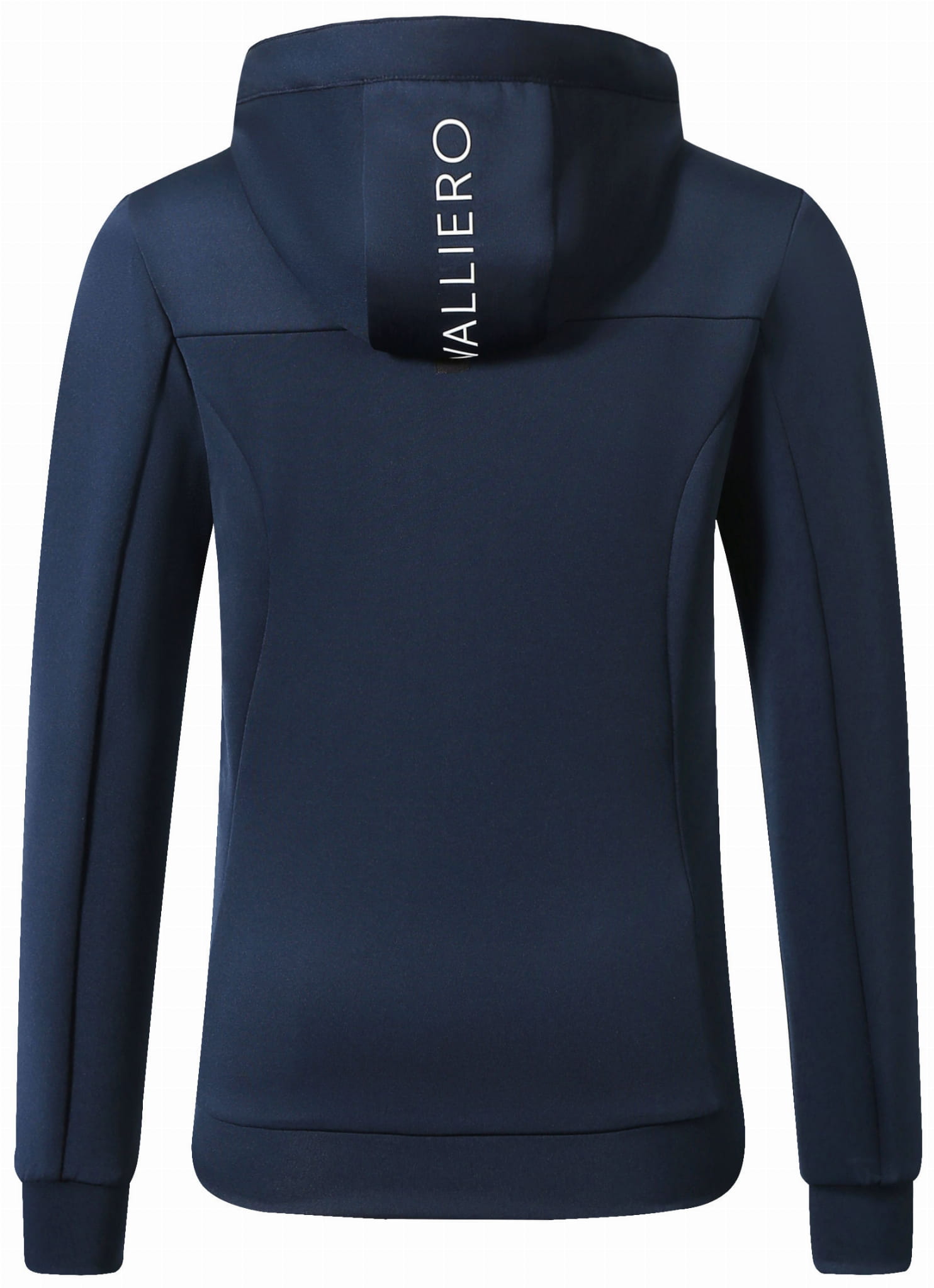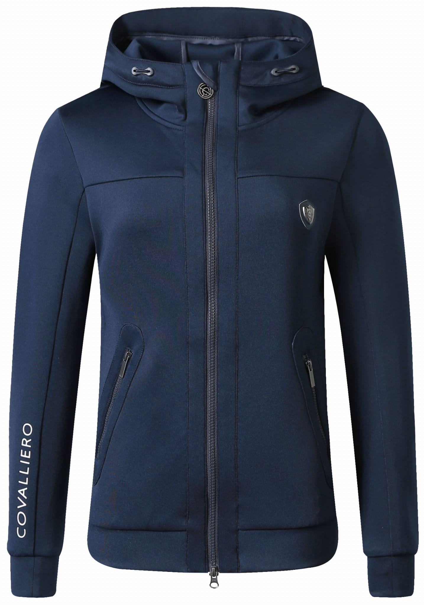 Wykonana z wysokiej jakości oddychającego i przyjemnego w dotyku materiału, ciepła bluza jeździecka z kapturem. Taliowany krój podkreśla kobiecą sylwetkę zapewniając przy tym komfort i swobodę ruchów podczas użytkowania. Posiada dwie kieszenie zapinane na zamek, które z łatwością pomieszczą najpotrzebniejsze drobiazgi. Kaptur dodatkowo chroni przed zimnem a w razie gdy nie jest potrzebny można go dopiąć do bluzy przy pomocy guzika, tak aby nie przeszkadzał w trakcie treningu. Ozdobiona kontrastowymi napisami Covalliero na kapturze i rękawie oraz subtelnym logo marki na piersi.