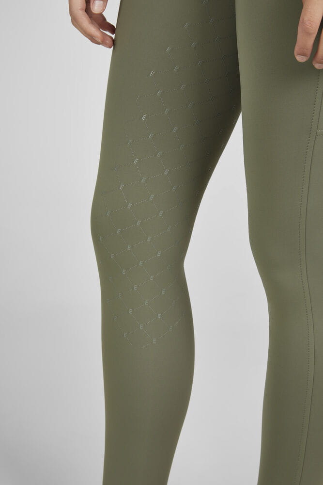 Damskie legginsy jeździeckie z pełnym silikonowym lejem ESKADRON Flex Classic Sports 2025- oliwkowe