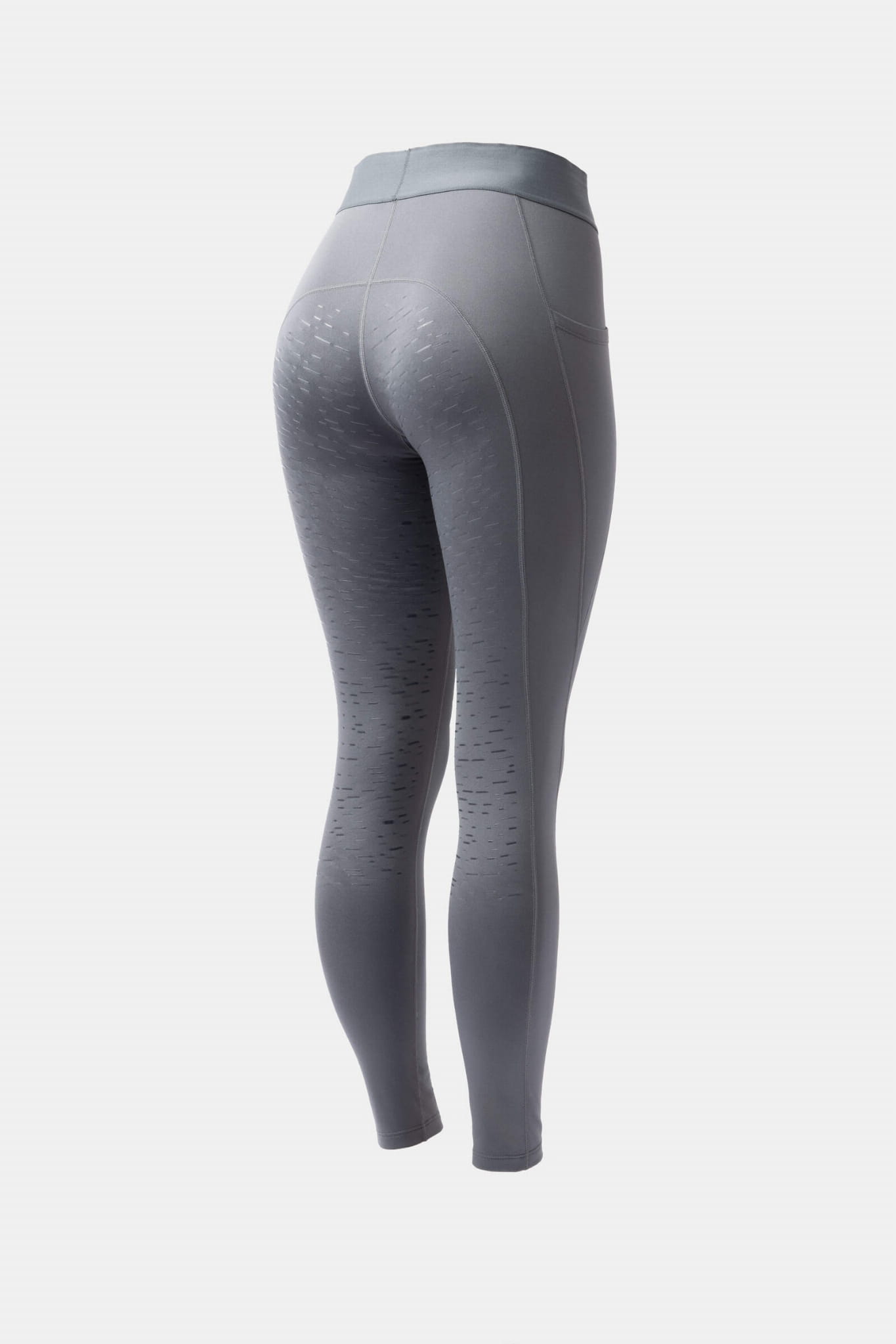 Damskie legginsy jeździeckie z wysokim stanem, silikonowym pełnym lejem i kieszenią na telefon, lekko ocieplane - szare