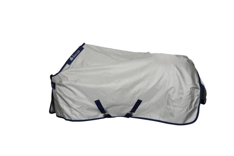 Wodoodporny a przy tym całkowicie oddychający materiał zewnętrzny wykonany jest ze specjalistycznego nylonu balistycznego (odpornego na zniszczenia) pokrywanego aluminium w kolorze srebrnym, odbija on promienie UV przez co zapobiega przegrzewaniu się konia.