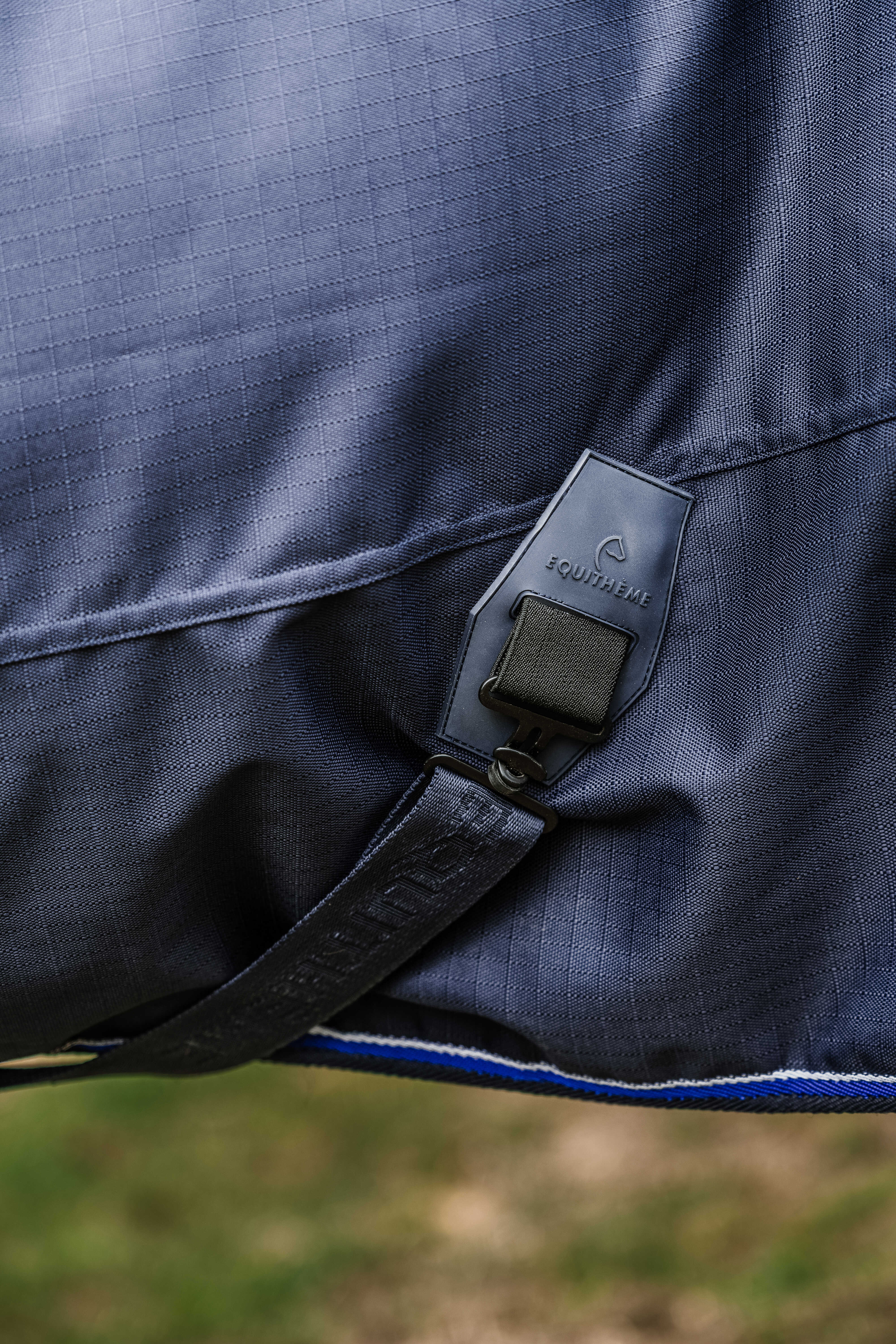 Wykonana z wytrzymałego materiału ripstop 1200D, jest wodoodporna i oddychająca (3000/3000), co zapewnia niezawodność nawet w trudnych warunkach pogodowych. Antybakteryjna podszewka z poliestru zapobiega otarciom i dba o zdrową skórę konia.