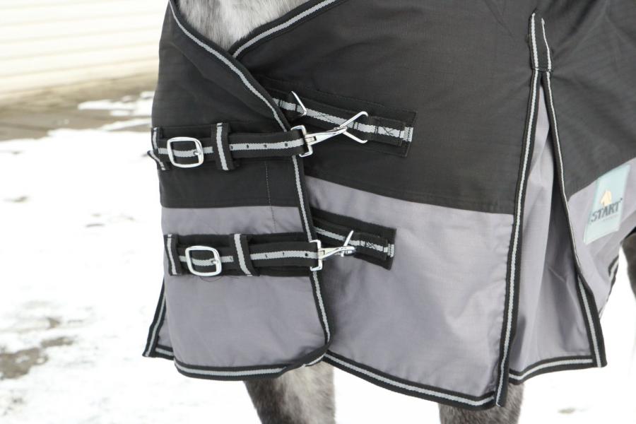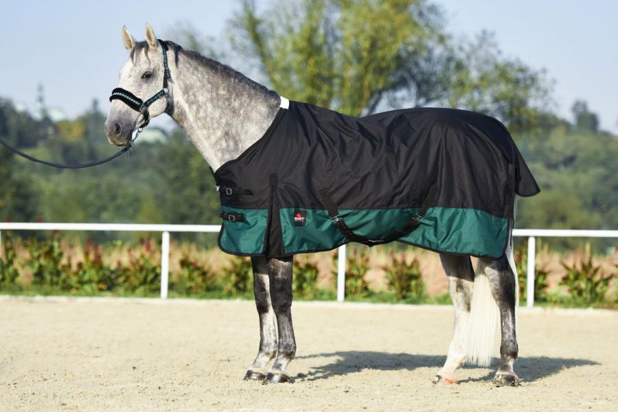 Padokowa derka bez wypełnienia. Wykonana z wodoodpornego i oddychającego materiału RipStop o gramaturze 600 DEN od wewnątrz podszyta polarem. Posiada rozcięcia na łopatkach zapewniające swobodę ruchów, z przodu podwójną regulację z możliwością szybkiego zapięcia. Pasy krzyżowe zapobiegające przesuwaniu się derki, odpinane pasy na nogi i klapę na ogon. Dostępna w 5-ciu rozmiarach i wielu kolorach.
