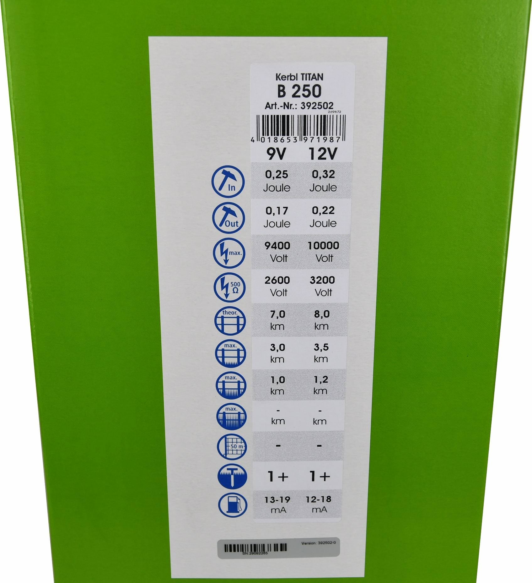 Elektryzator bateryjny TITAN B 250, dla koni, bydła i małych zwierząt, 0,32 J, KERBL