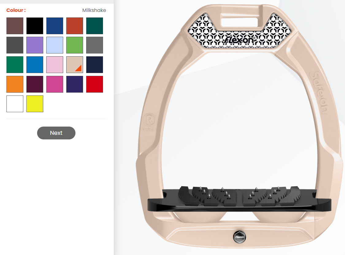 Skonfiguruj wyjątkowe strzemiona według własnego projektu. Dopasuj do swojego sprzętu i upodobań a jednocześnie zadbaj o bezpieczeństwo i zdrowie wspomagając stawy. Starannie przemyślana i przetestowana konstrukcja strzemion Flex-on pomaga we właściwym ułożeniu stopy, dodatkowo dzięki pochłaniającym energię drgań elastomerom wpływa na rozluźnienie stawów skokowych, co z kolei przekłada się na głębszy i bardziej poprawny dosiad jeźdźca. Francuska firma Flex-On tworzy swoje produkty we współpracy z inżynierami i sportowcami, dzięki czemu strzemiona Flex-On to połączenie innowacji, wygody i wyszukanego stylu.