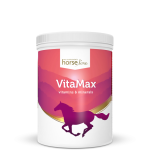 Horseline VitaMax to starannie dobrany, kompletny zestaw witamin i składników mineralnych specjalnie dedykowany dla koni, w diecie których owies jest głównym składnikiem paszy treściwej. Został wyprodukowany z wysokiej jakości surowców niemodyfikowanych genetycznie. Preparat doskonale wpływa na poprawę kondycji fizycznej oraz rewitalizację organizmu podczas wzmożonego wysiłku fizycznego, ciąży i laktacji jak również po przebytych chorobach. Wspomaga prawidłowe funkcjonowanie, wzrost i rozwój organizmu oraz uzupełnia dietę o niezbędne dla zdrowia składniki odżywcze. Organizm konia nie jest w stanie syntetyzować samodzielnie wszystkich witamin. Niedobory witaminowe to problem z którym boryka się wielu właścicieli koni. Objawy mogą być różne, min. słaba jakość sierści i rogu kopytowego, tendencja do otarć skóry i wypadania włosów, obniżona odporność, zaburzenia rozwoju, apatia czy osłabiona odporność. Witaminy w żywieniu koni pełnią ogromną rolę, są niezbędne dla prawidłowego funkcjonowania organizmu. Odpowiadają za wszystkie podstawowe procesy zachodzące w komórkach, również na przemianę materii.