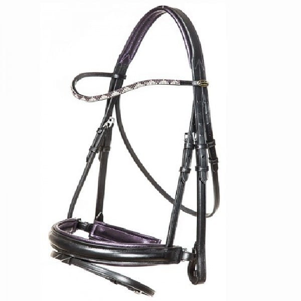 Oryginalne i komfortowe ogłowie firmy Kavalkade wykonane z wysokiej jakości skóry. Nachrapnik i pasek potyliczny miękko podszyte kontrastową , barwioną na zielono skórą. Naczółek zdobiony diamencikami , wzór w kolorze pasującym do obszycia. Nachrapnik zaciskowy regulowany, ze skośnikiem. Sprzączki wykonane ze stali nierdzewnej. Ogłowie sprzedawane w komplecie z wodzami parcianymi.