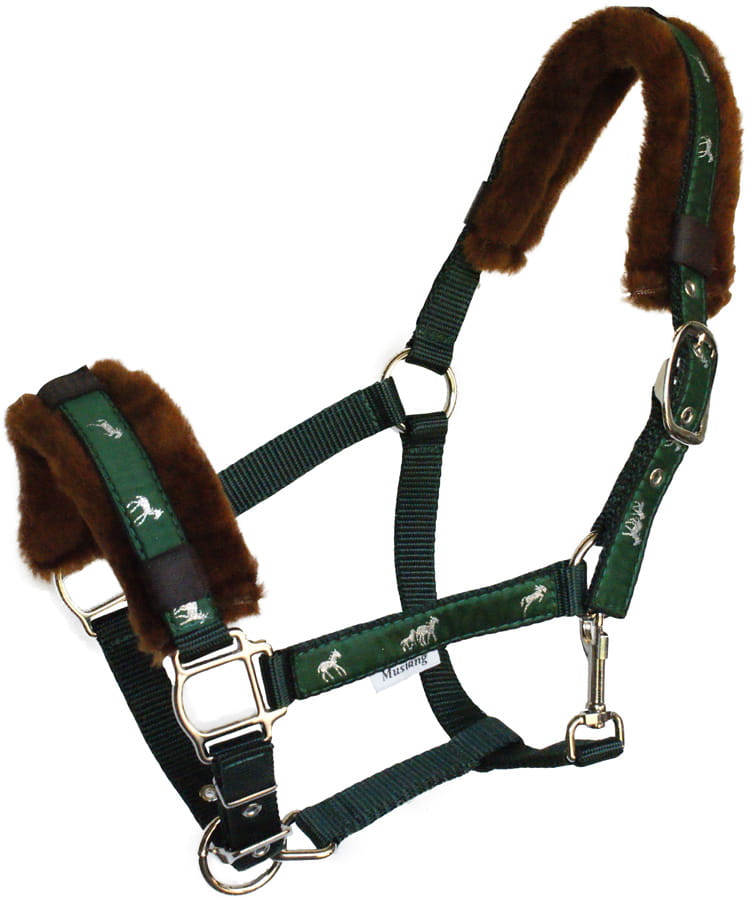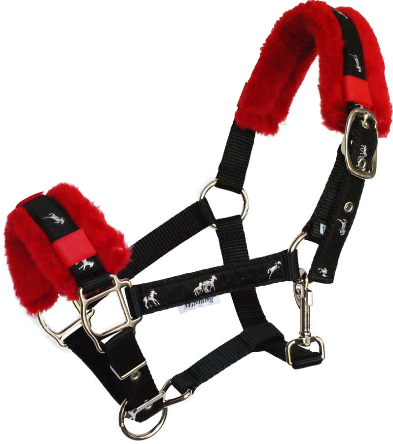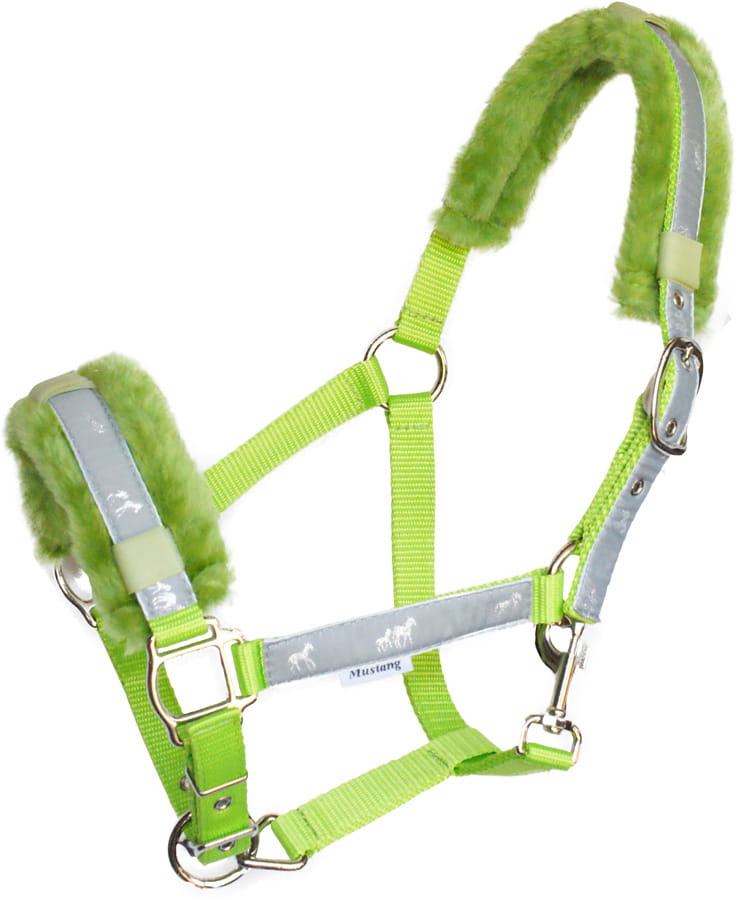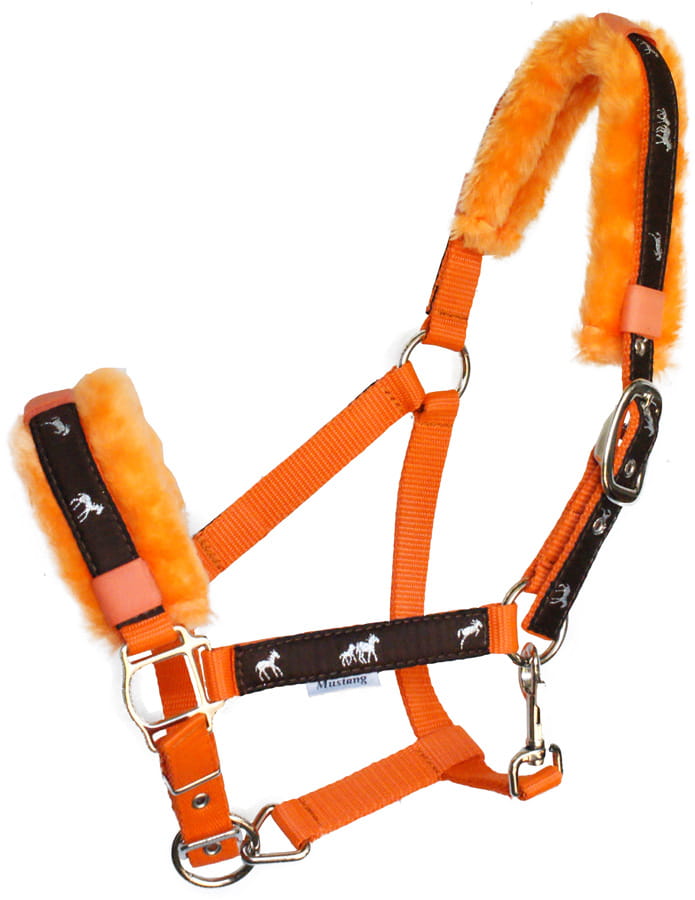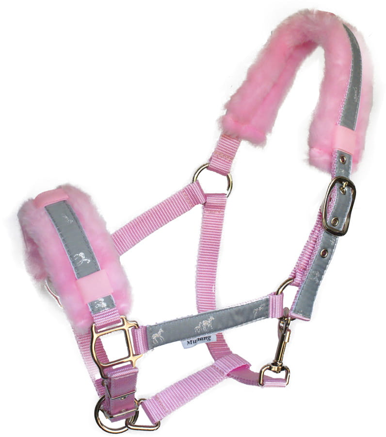 Elegancki i komfortowy kantar wykonany z mocnej taśmy. Ozdobiony dodatkowo naszytą taśmą we wzór w koniki. W części potylicznej i nachrapnikowej posiada podkładki ze sztucznego futerka w pasujących kolorach, zapinane na rzepy. Dzięki takiemu rozwiązaniu można je łatwo zdejmować do prania. Mocne okucia w kolorze srebrnym. Dostępny w 5-ciu rozmiarach i wielu atrakcyjnych kolorach.