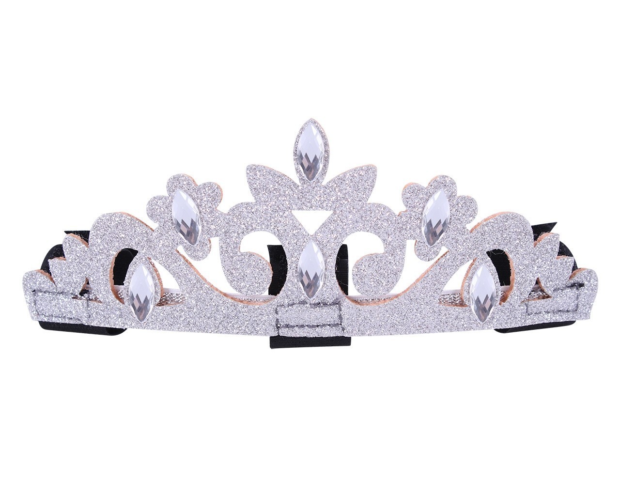 Idealna ozdoba dla małych księżniczek i ich kucyków !!! Brokatowa korona ozdobiona błyszczącymi kamyczkami dopinana do naczółka 3 paskami zapinanymi na mocny rzep.