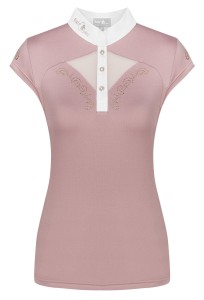 Wykonana z wysokiej jakości oddychającej, przyjemnej w dotyku oraz elastycznej dzianiny z funkcją UVP, niezwykle elegancka i kobieca koszula konkursowa. Posiada elastyczne wstawki z przodu oraz na plecach z siateczki, która zapewnia maksymalny przepływ powietrza, dzięki czemu doskonale sprawdzi się w upalne dni. Koszula jest subtelnie ozdobiona wzorami z połyskujących kryształków oraz napisem Fair Play na kołnierzyku w najmodniejszym kolorze różowego złota ! Zapinana na trzy ozdobne guziki.