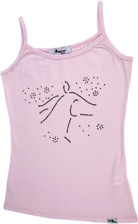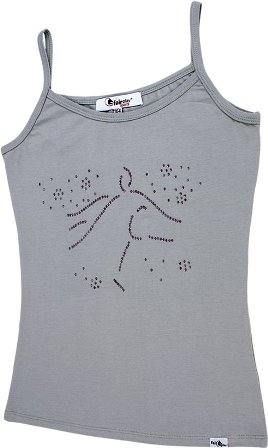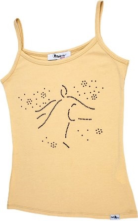 Bluzka na ramiączkach z lekkiego, elastycznego materiału (95% bawełna, 5% elastan). Idealny na gorące, letnie dni. Z przodu ozdobiona aplikacją z drobnych, błyszczących dżetów.