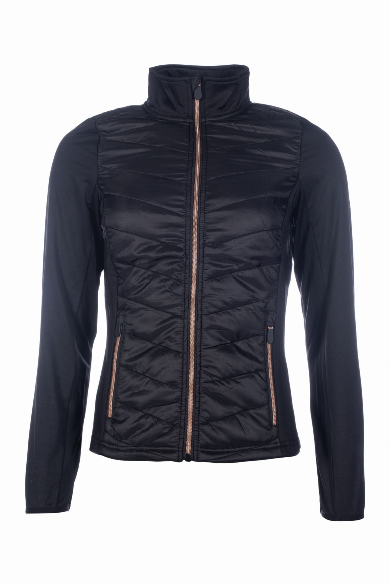 Lekka, "oddychająca" kurtka uszyta z dwóch rodzajów materiału. Front i plecy wykonane są ze śliskiego nylonu, który jest znacznie odporniejszy na zabrudzenia i chroniący przed wiatrem, a rękawy i przestrzenie boczne z miękkiego jerseyu dla większego komfortu. Bluza zapinana na zamek błyskawiczny z przodu, wykończona stójką pod szyją. Wyposażona w dwie kieszenie z przodu zapinane na suwak. Charakteryzuje ją wysoki stopień utrzymania ciepła, Bardzo wygodna i idealna nie tylko do jazdy konnej ale także do innych sportów czy na spacery z psem.