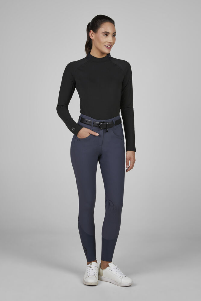 Legginsy damskie PIKEUR Linnet 6505 to wysokiej jakości spodnie jeździeckie zaprojektowane z myślą o maksymalnym komforcie, funkcjonalności i estetyce. Wykonane w technologii bezszwowej (seamless) z elastycznego, oddychającego materiału o właściwościach modelujących (tzw. body sculpting), doskonale dopasowują się do sylwetki, zapewniając pełną swobodę ruchów podczas jazdy konnej. Wysoki stan (high waist) podkreśla talię i zwiększa komfort użytkowania, a szeroki pas gwarantuje stabilność i dobre trzymanie legginsów na miejscu.