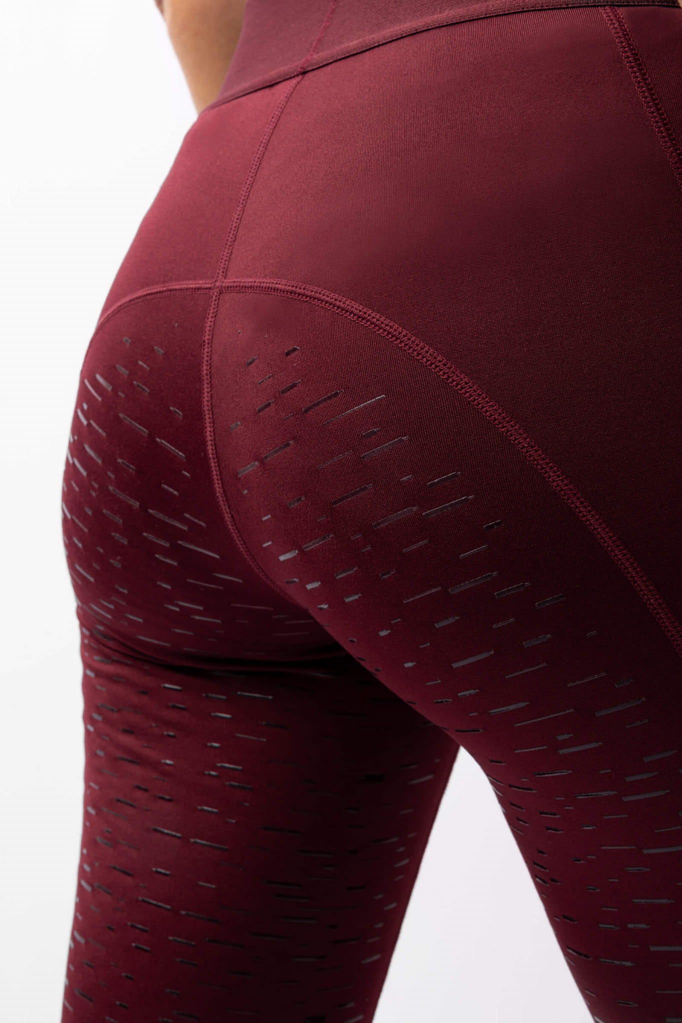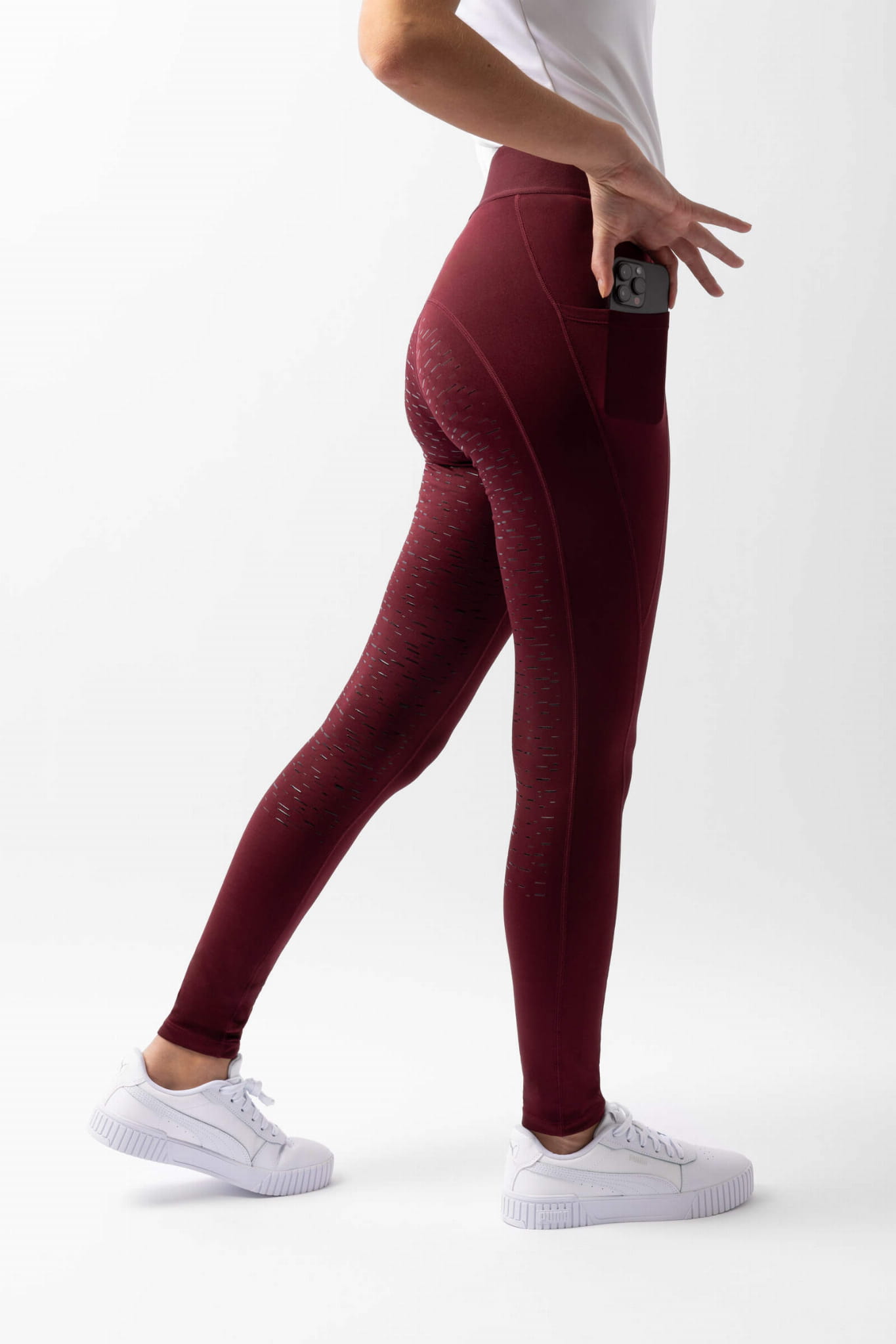 Damskie legginsy jeździeckie z wysokim stanem, silikonowym pełnym lejem i kieszenią na telefon, lekko ocieplane - bordowe
