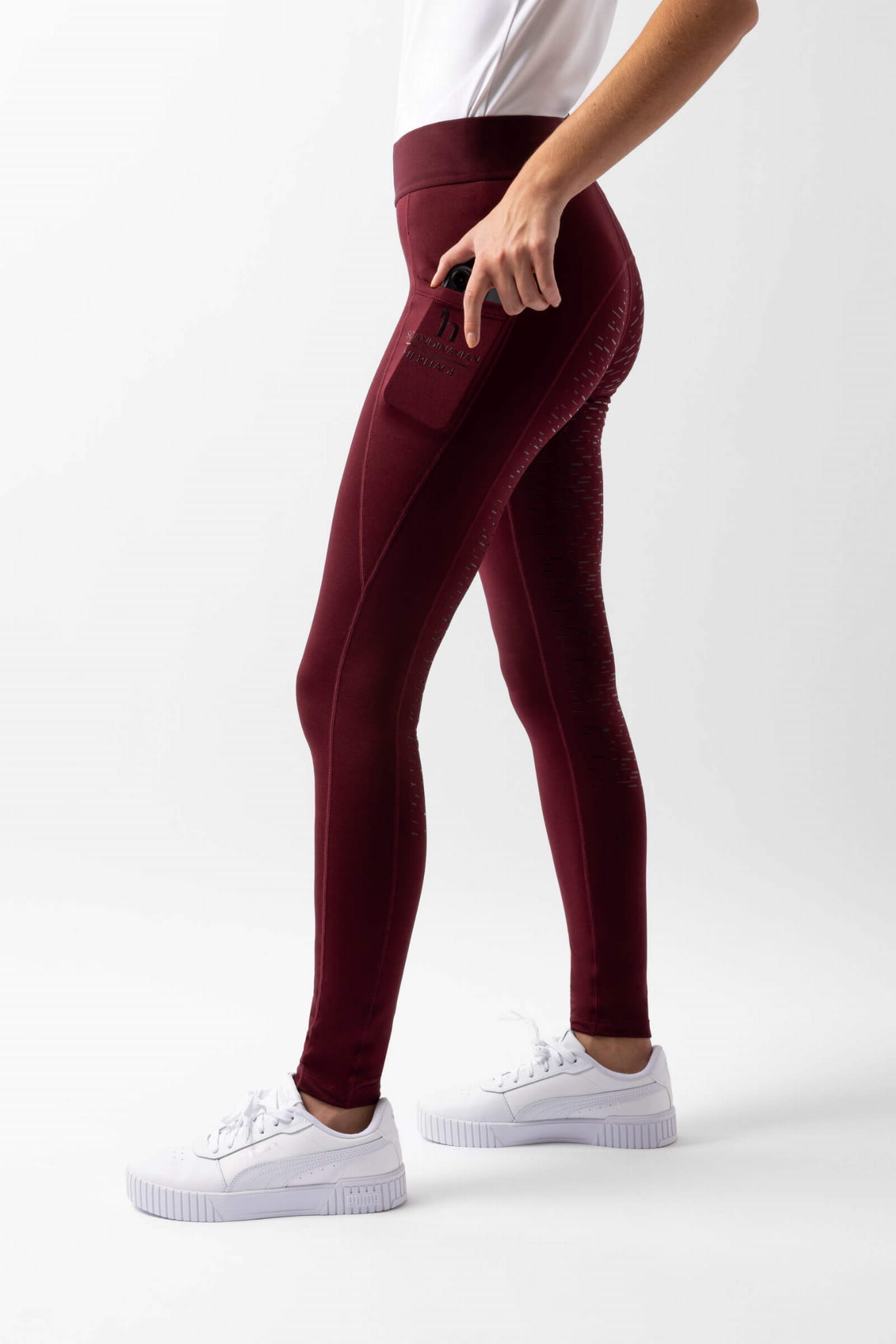 Legginsy jeździeckie z pełnym silikonowym lejem i kieszenią na telefon HORZE Maia bordowe