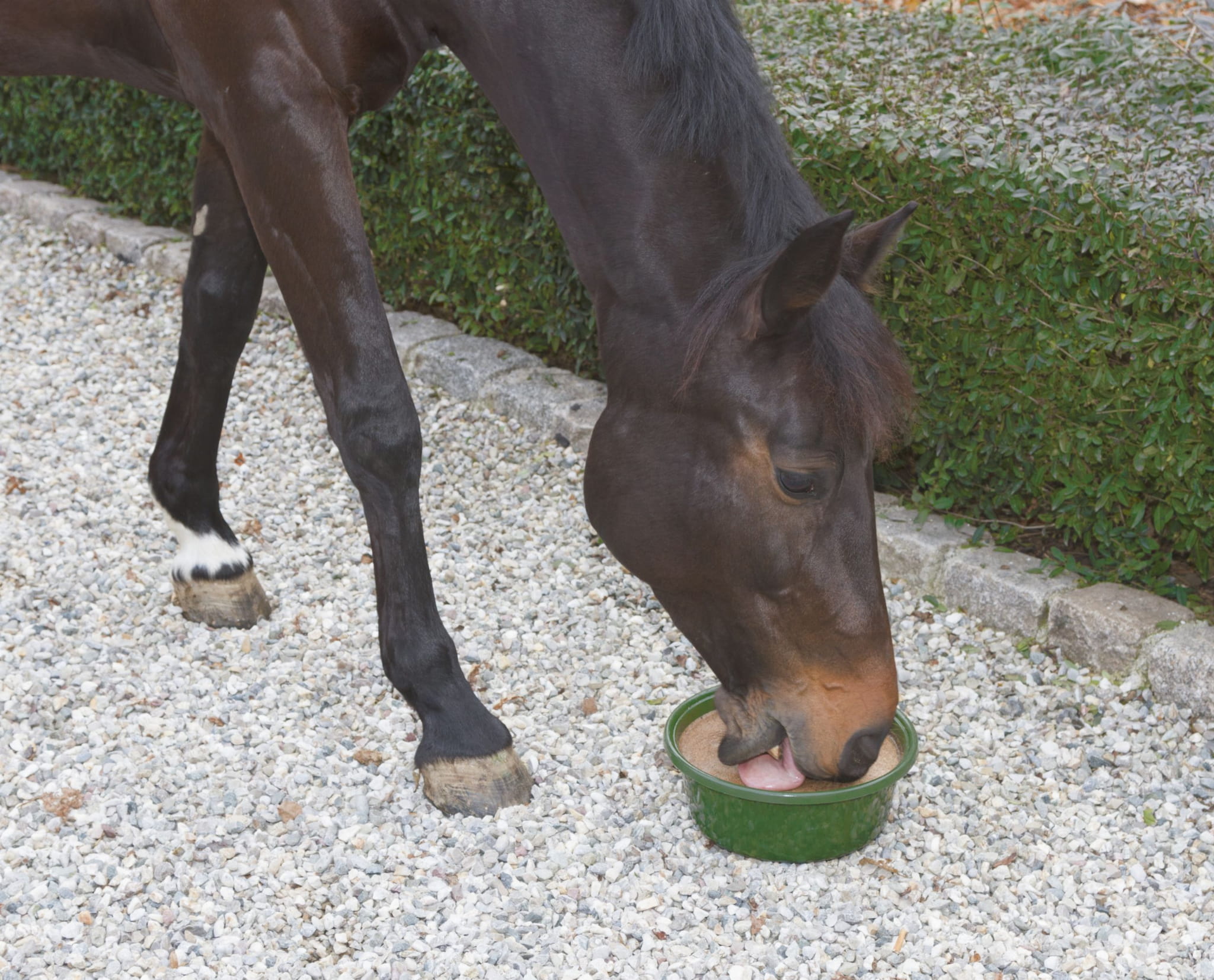 Lizawka DELIZIA Bronchial w misce to świetny pomysł na zaproszenie konia do pozostania z głową w dole i umożliwienie spłynięcie wydzieliny z dróg oddechowych. Zalecana po treningu szczególnie dla koni astmatycznych i z RAO.