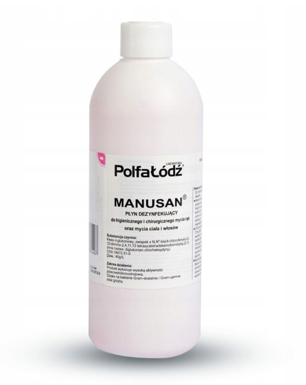 Manusan to skuteczny płyn dezynfekujący przeznaczony do stosowania u ludzi, psów i koni. Dzięki zawartości substancji aktywnych skutecznie eliminuje bakterie, wirusy i grzyby, wspomagając higienę skóry i zapobiegając zakażeniom. Delikatna formuła nie powoduje podrażnień, co czyni go bezpiecznym do regularnego użytku. Manusan jest preparatem higienicznym, który wykazuje aktywność przeciw tlenowym oraz beztlenowym bakteriom Gram-dodatnim i Gram-ujemnym, a także grzybom. Jest on skuteczny w przypadku gronkowców, a do tego dezaktywuje szereg wirusów. Diglukonian chlorheksydyny posiada zdolność kumulowania się w naskórku, dzięki czemu preparat wykazuje przedłużone działanie (do około 3 godzin), niszcząc drobnoustroje bytujące w głębszych warstwach skóry.