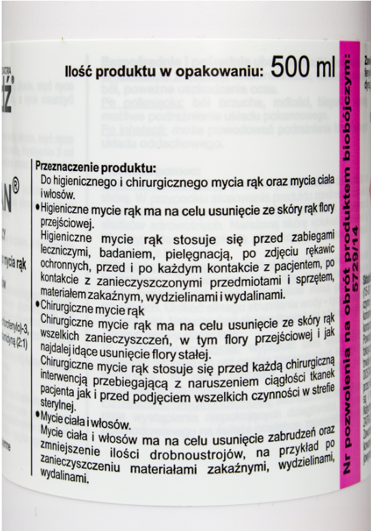 Wskazania: do higienicznego i chirurgicznego mycia rąk oraz mycia ciała i włosów.