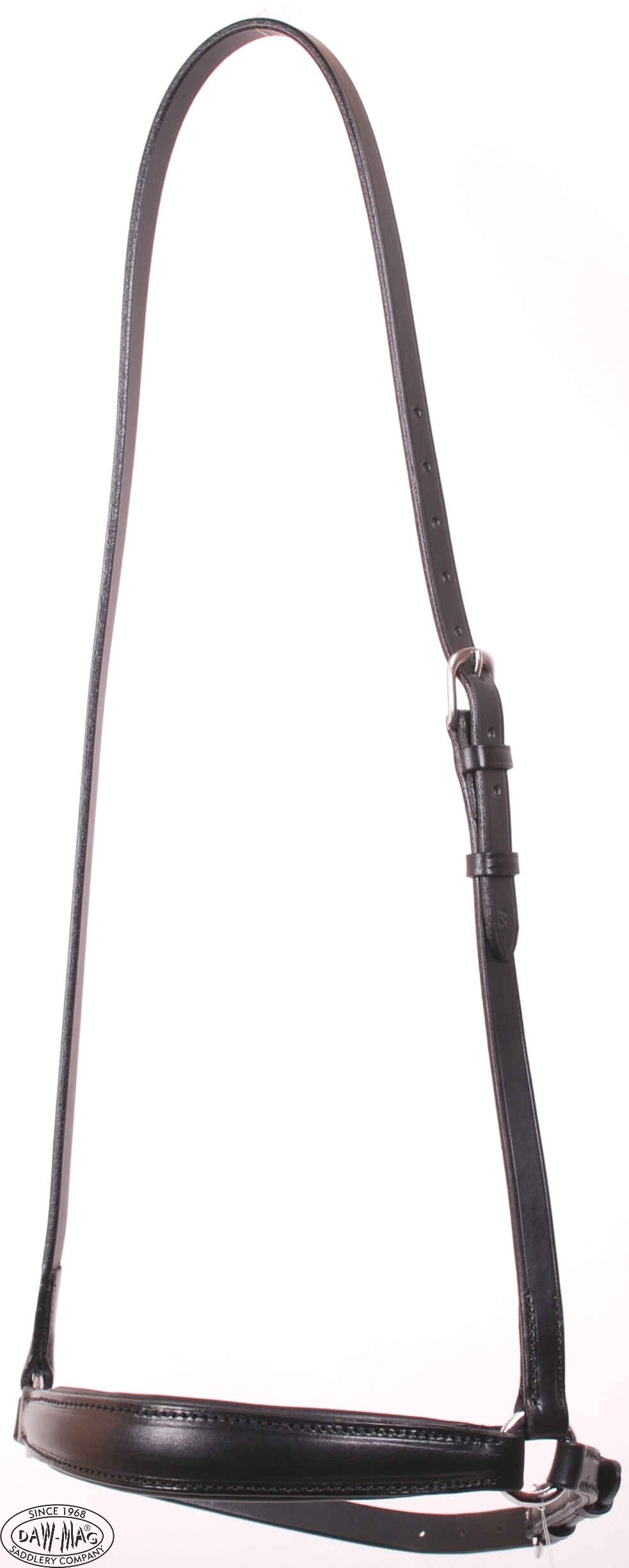 Nachrapnik wykonany z wysokiej jakości skóry, miękko podszyty od wewnętrznej strony. Posiada ozdobne przeszycia. Okucia ze stali nierdzewnej w kolorze srebrnym