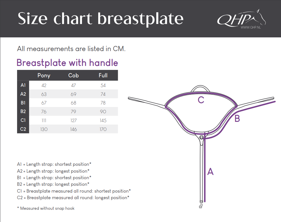 Napierśnik z rączką do trzymania QHP - czarny, rozmiar : Pony, Cob, Full
