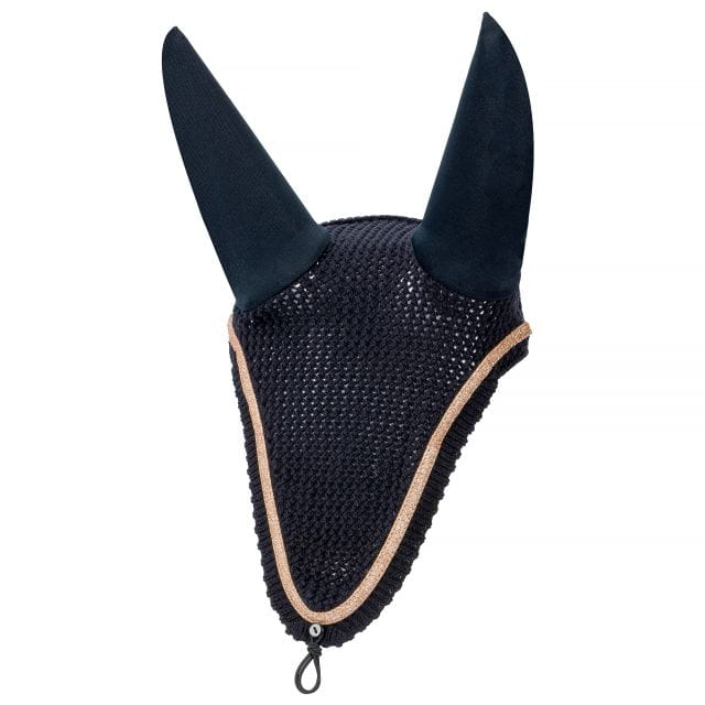 Eleganckie długie nauszniki, wykonane z przyjemnej w dotyku bawełny z elastycznymi uszami. Ozdobione brokatową lamówką w kolorze rosegold. Posiadają elastyczną gumkę oraz guzik, dzięki czemu szybko i łatwo można je doczepić do ogłowia.