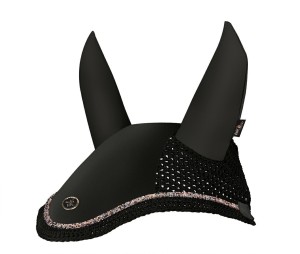 Uszy wykonane z elastycznej dzianiny dzięki czemu jeszcze lepiej dopasowują się do końskich uszu zapewniając mu komfort. Ozdobione pięknie połyskującą biżuteryjną taśmą z wielobarwnymi kryształkami. Subtelne logo marki w kolorze Vintage gold nadaje nausznikom elegancji.
