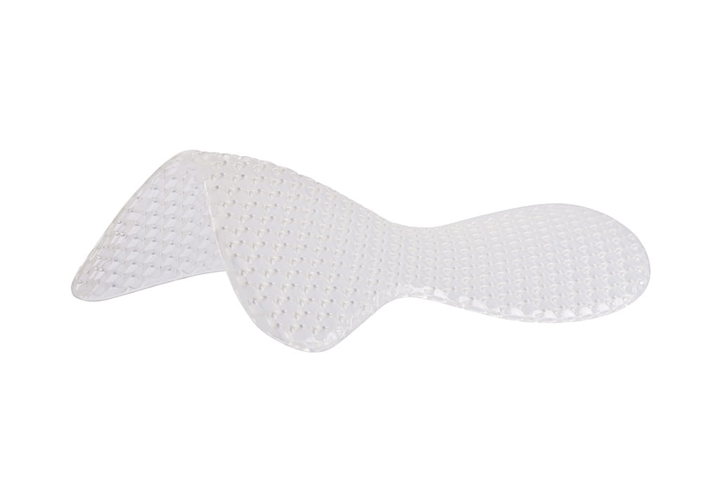 Nowoczesna podkładka żelowa pod siodło absorbująca wstrząsy z otworami wentylacyjnymi. Skutecznie rozkłada ciężar ciała jeźdźca na grzbiecie konia, miękka żelowa struktura podkładki jest przyjazna dla skóry. Zapobiega przesuwaniu się siodła. Otwory i wypustki w żelu poprawiają cyrkulację powietrza.