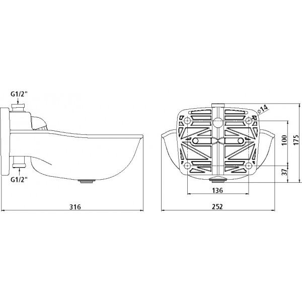 • dopływ wody 1/2 od góry lub od dołu