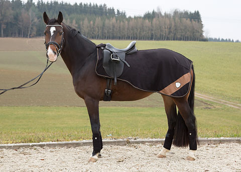 Praktyczna półderka do użytku w czasie rozgrzewki i po skończeniu treningu. Zalecana szczególnie dla koni z problemami w odcinku lędźwiowym kręgosłupa.
