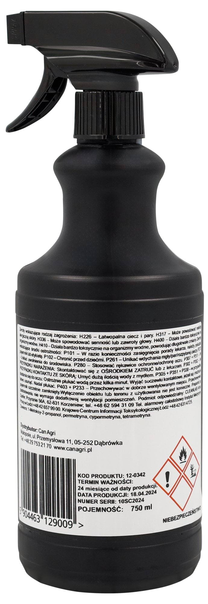 Skład: permetryna 30g/l, cypermetryna 10g/l, tetrametryna 3g/l, stabilizatory oraz związki ułatwiające aplikację preparatu.