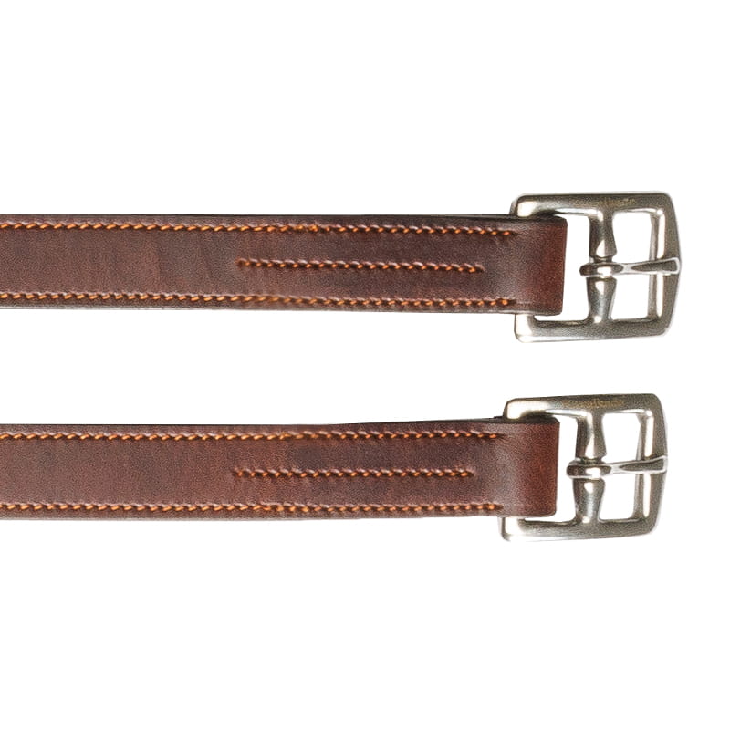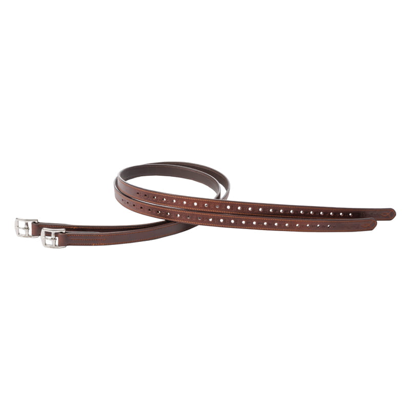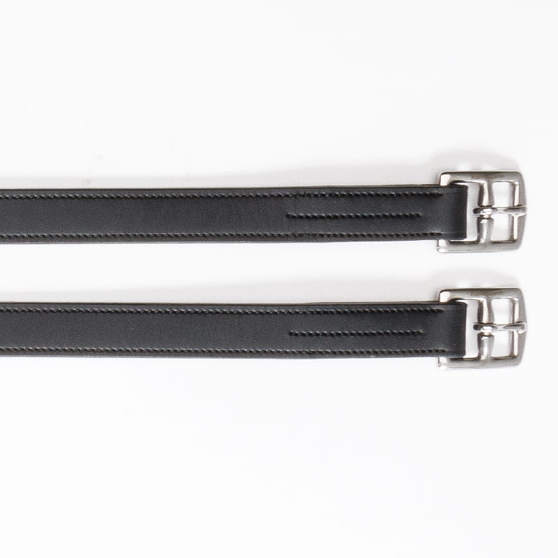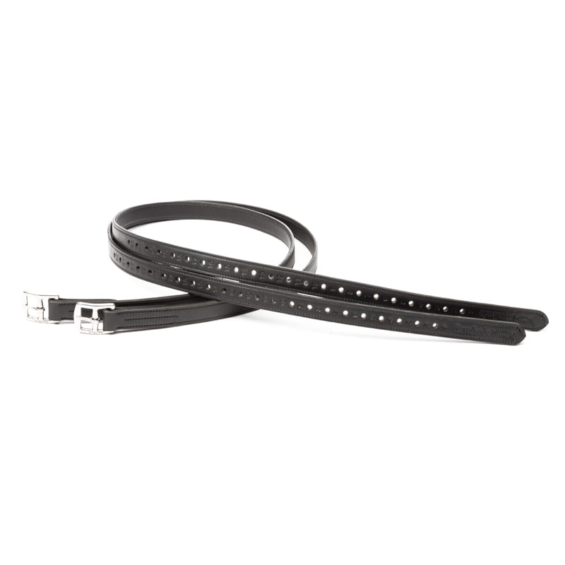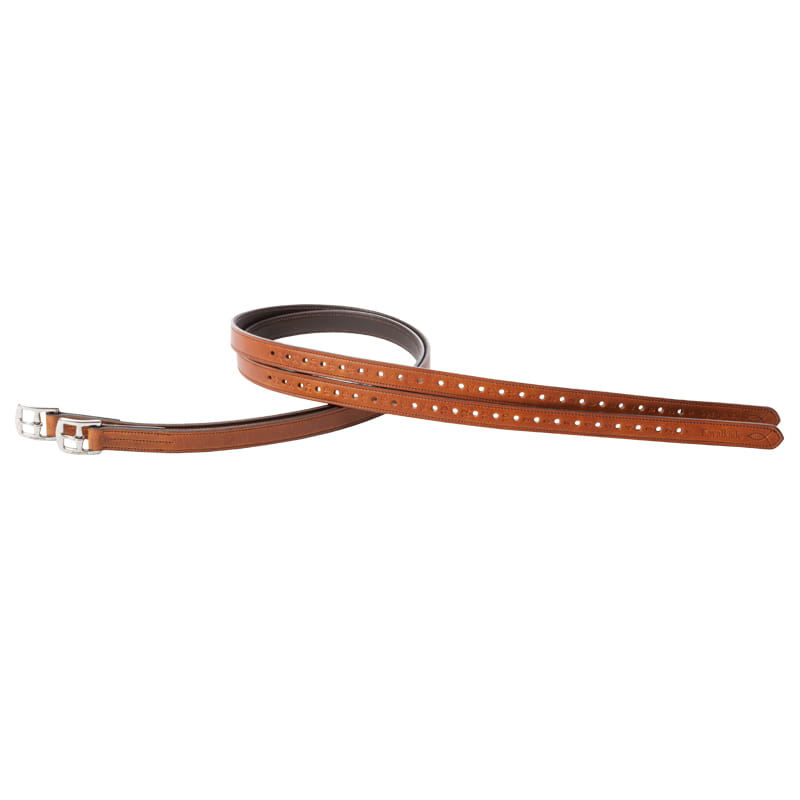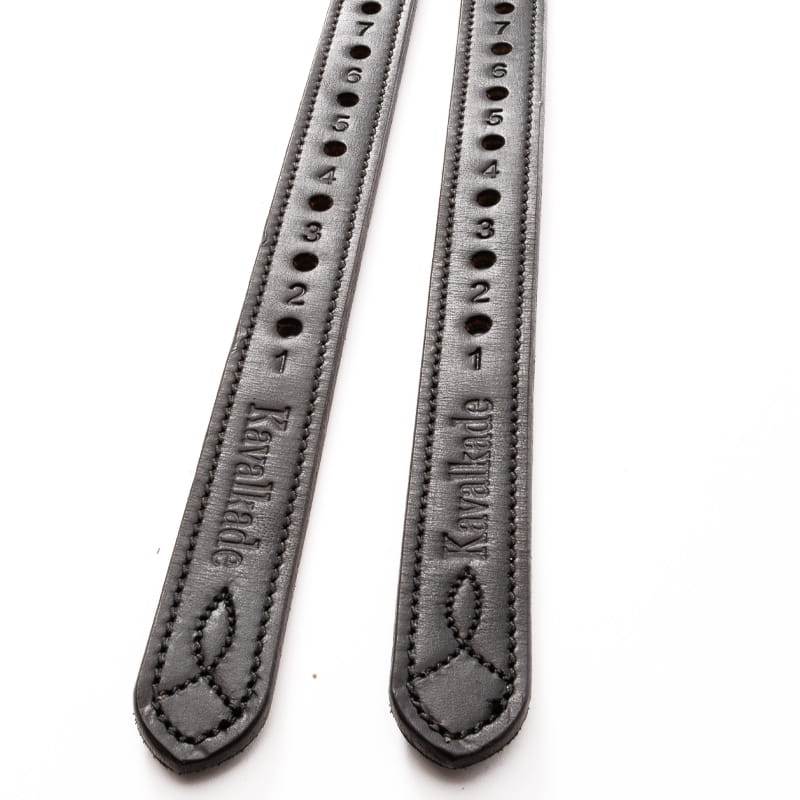 Ekskluzywne puśliska marki Kavalkade wykonane z dwóch rodzajów skóry : olejowanej z wierzchu i miękkiej od spodu. Wewnątrz mają wszytą nylonową taśmę, dzięki czemu są bardzo mocne i odporne na rozciąganie. Olejowanie skóry sprawia, że jest ona jest znacznie trwalsza i elastyczna. Zakrzywiona klamra pozwala na wygodniejsze dopasowanie oraz użytkowanie. Puśliska mają numerowane dziurki dla większej wygody jeźdźca. Duża ilość otworów w bliskich odległościach od siebie ( ok. 2cm ) umożliwia łatwiejsze dopasowanie długości strzemion. Puśliska ozdobione subtelnym haftem i wytłoczonym napisem Kavalkade na końcu. Sprzączki w kolorze srebrnym.