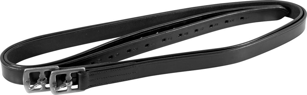 Mocne skórzane paski na strzemiona - puśliska wyposażone w sprzączki ze stali nierdzewnej. Numerowane dziurki ułatwiają regulację długości strzemion.
